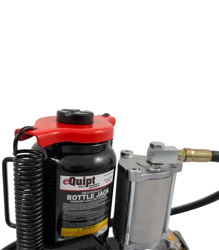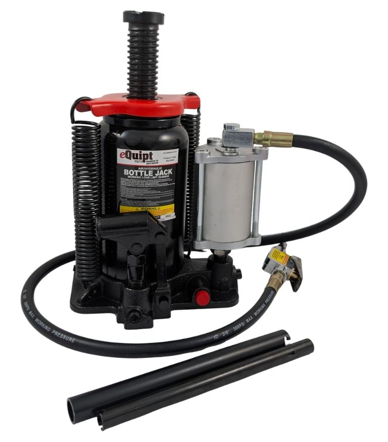 Our eQuipt Air/Manual Bottle Jacks are designed to operate either manually or pneumatically. The manual function allows for normal operation anywhere, even without an air supply.