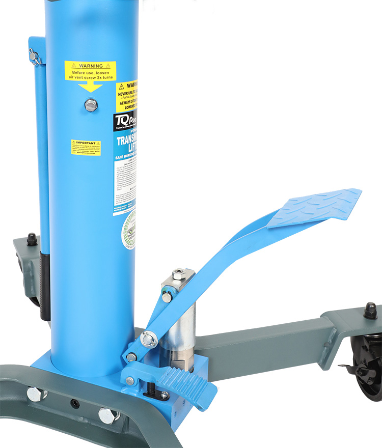 This TQ Pro "Latest Applied Technologies" 2-Stage Hydraulic Telescopic Transmission Lifter offers a wide range of versatility designed to help increase workshop productivity. Designed for lifting passenger car transmissions, the universal mounting lifting platform provides a wide four way tilt range and the wide base is enhanced by four premium nylon swivel castors for safer maneuvering around the workshop. The convenient rapid lift without load and slow descent with load is controlled via the foot operated pump and release valve to keep the mechanic’s hands free during use. The height and lifting platform adjustability of this telescopic Transmission Lifter makes it great for any transmission installation or removal. CNC technology, ensures the chassis and frame constructed of superior-grade steel is manufactured to exacting standards that meet TQ Pro expectations for professional quality and durability.