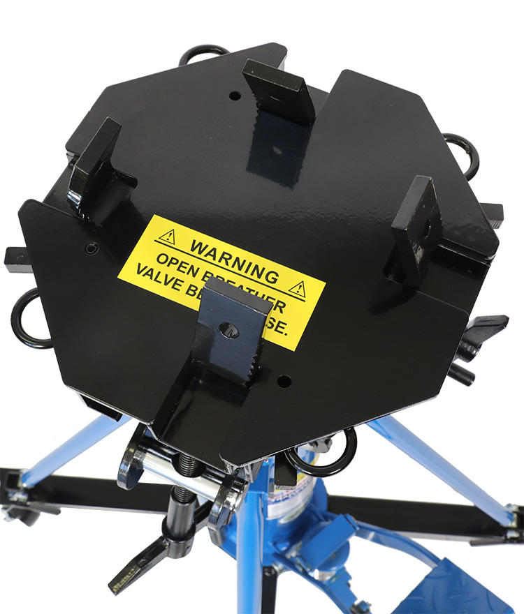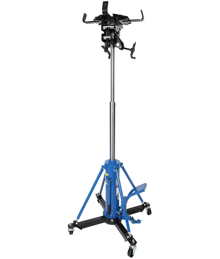 This TradeQuip "Made for the Trade" 1,000kg Transmission Lifter is designed for passenger car, 4WD & Light commercial transmission installation and removal. It features a universal mounting cradle that provides a 4 way tilt range and a manually operated hydraulic system with smooth hydraulic lift and descent. The hydraulic system also includes a bypass system to prevent over extension and accidental overloading. The sturdy and stable design offers safety and security when removing and installing large and heavy transmissions.