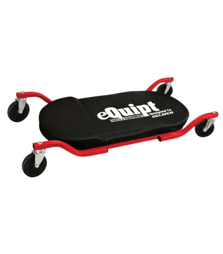 The eQuipt "Designed to Deliver"  heavy duty wide-track creeper is ideal for use in commercial premises such as mechanics and panel beaters workshops, car dealerships, as well as home garages. Built for reliability, this heavy-duty creeper features a robust 180kg load capacity. The wide-track design includes a vinyl cushion with dedicated padded support for the head, neck, and lumbar regions. Four smooth-rolling 130mm swivel castors provide effortless maneuverability and stability on workshop floors.