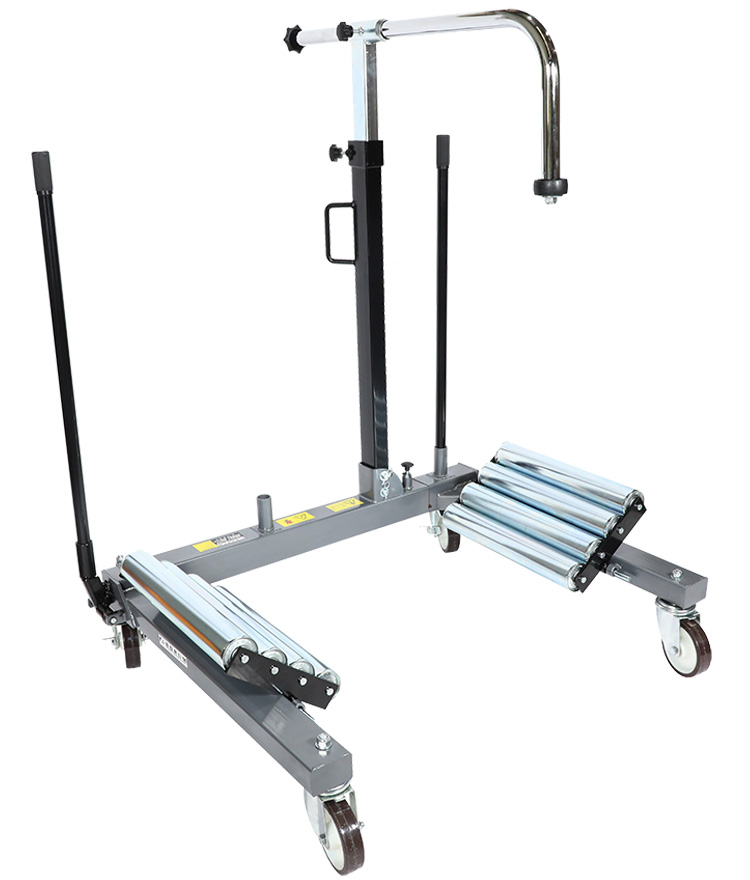 - Heavy duty steel frame adjusts laterally to allow precise positioning of commercial truck, earthmoving, agricultural & tractor tyres along with the wheel rollers for further control.